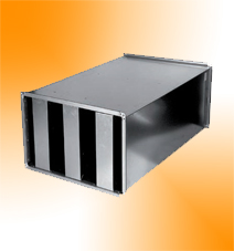 Пластинчатый шумоглушитель представляет собой прямоугольный корпус из оцинкованной стали. Внутренняя полость глушителя разделена пластинами, со звукоизолирующим материалом (минеральной). Проходящий сквозь шумоглушитель для вентиляции звук поглощается, и уровень шума в системе вентиляции значительно уменьшается.
